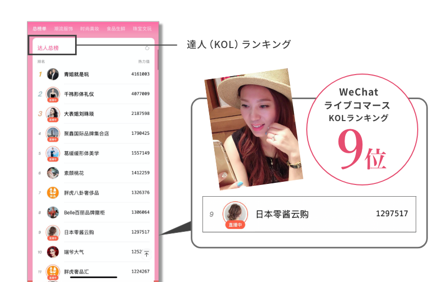 ゼロちゃんは2022年3月WeChatライブコマースKOLランキングで、9位(海外1位)を獲得。