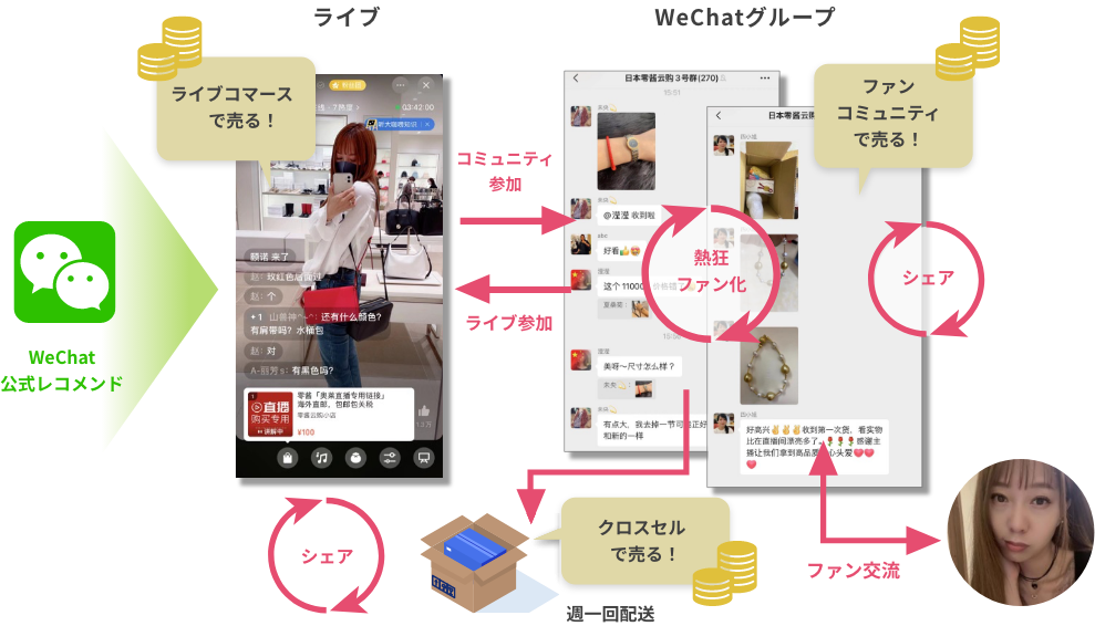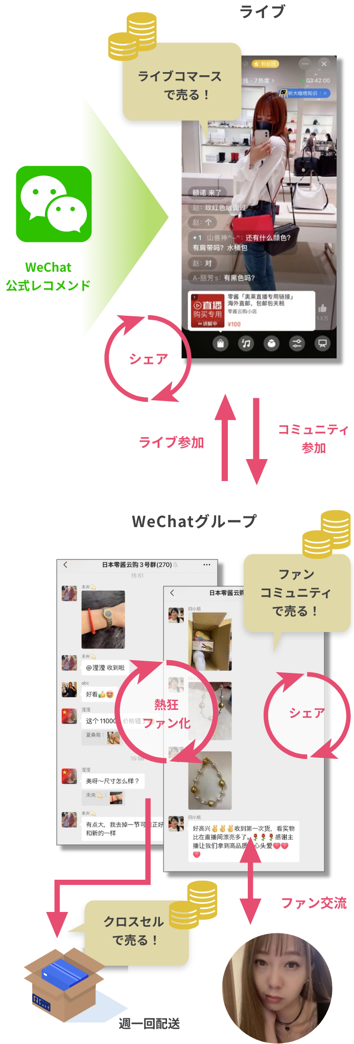 - ・商品はライブコマースやWeChatグループで1ヶ月に4回以上紹介いたします。